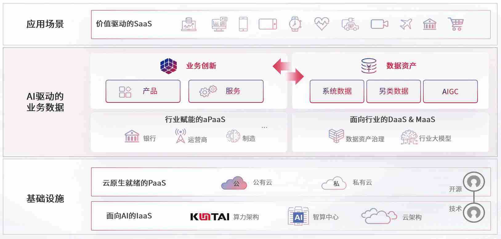 数字时代,,,围绕企业数字化转型的关键要素,,,,www.kaiyun.com数码开创性的提出数云融合战略和技术体系框架,,,,着力在云原生、、、数字原生、、、AI原生和信创产业上架构产品和服务能力,,,,为处在不同数字化转型阶段的快消零售、、汽车、、、、金融、、医疗、、、政企、、、、教育、、、运营商等行业客户提供泛在的敏捷IT能力和融合的数据驱动能力,,,构建跨界融合创新的数字业务场景和新业务模式,,,助力企业级客户建立面向未来的核心能力和竞争优势,,,,全面推动社会的数字化、、智能化转型升级。。。。